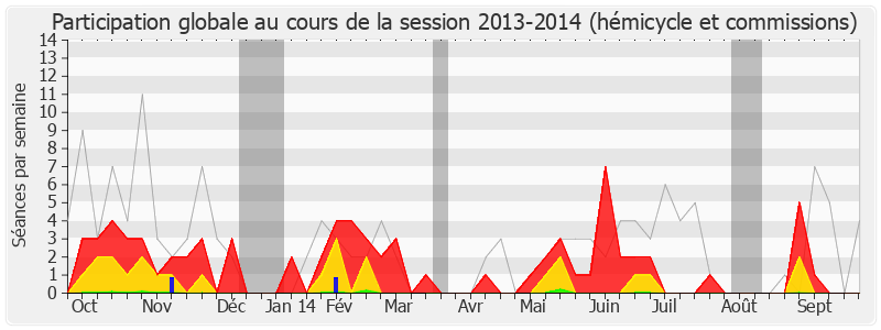 Présences enregistrées     Participations     Mots prononcés (x 10 000)     Vacances parlementaires   Présence médiane