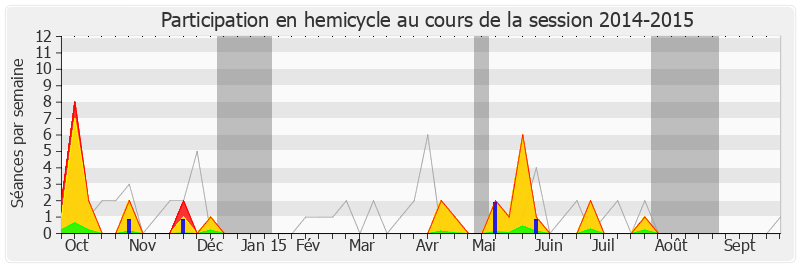 Présences enregistrées     Participations     Mots prononcés (x 10 000)     Vacances parlementaires   Présence médiane