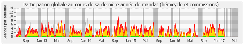 Présences relevées     Participations     Mots prononcés (x 10 000)     Vacances parlementaires   Présence médiane    Explications