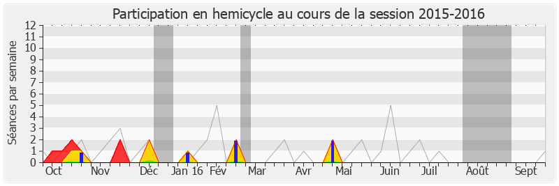 Présences enregistrées     Participations     Mots prononcés (x 10 000)     Vacances parlementaires   Présence médiane
