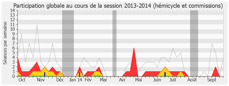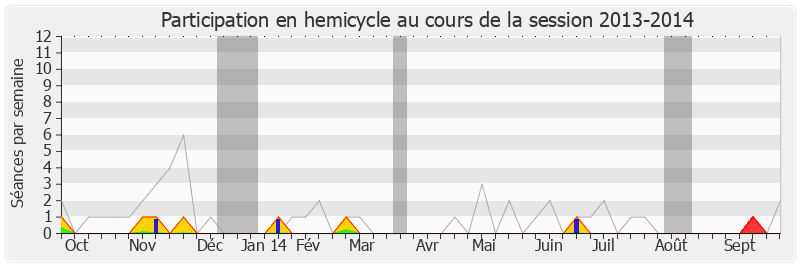 Présences enregistrées     Participations     Mots prononcés (x 10 000)     Vacances parlementaires   Présence médiane