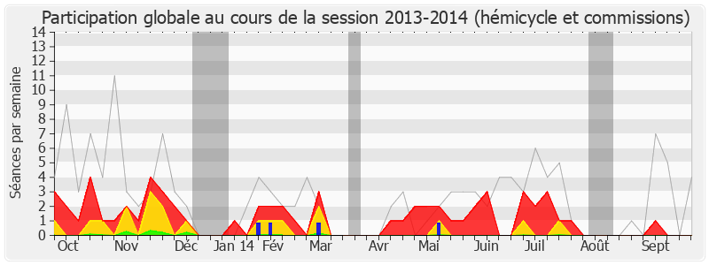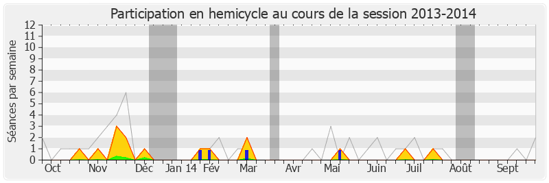 Présences enregistrées     Participations     Mots prononcés (x 10 000)     Vacances parlementaires   Présence médiane