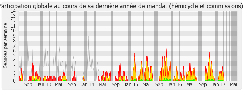 Présences enregistrées     Participations     Mots prononcés (x 10 000)     Vacances parlementaires   Présence médiane