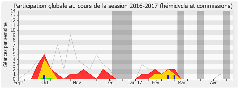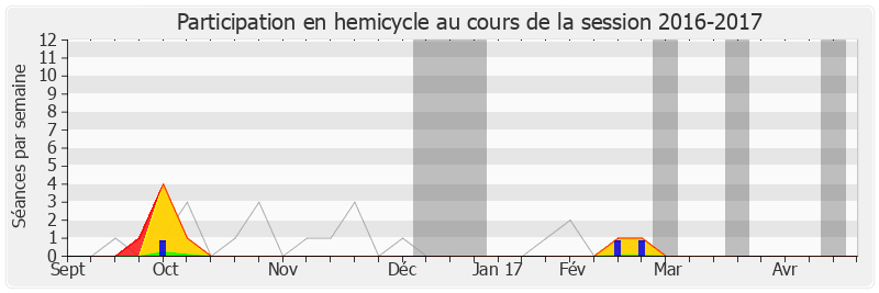 Présences enregistrées     Participations     Mots prononcés (x 10 000)     Vacances parlementaires   Présence médiane