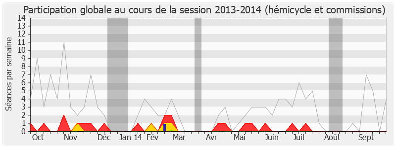 Présences enregistrées     Participations     Mots prononcés (x 10 000)     Vacances parlementaires   Présence médiane