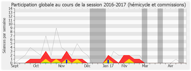 Présences enregistrées     Participations     Mots prononcés (x 10 000)     Vacances parlementaires   Présence médiane
