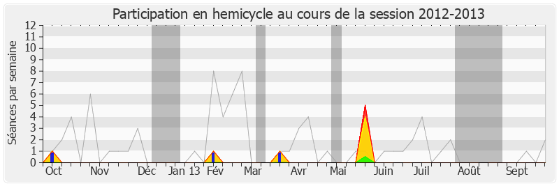 Présences enregistrées     Participations     Mots prononcés (x 10 000)     Vacances parlementaires   Présence médiane