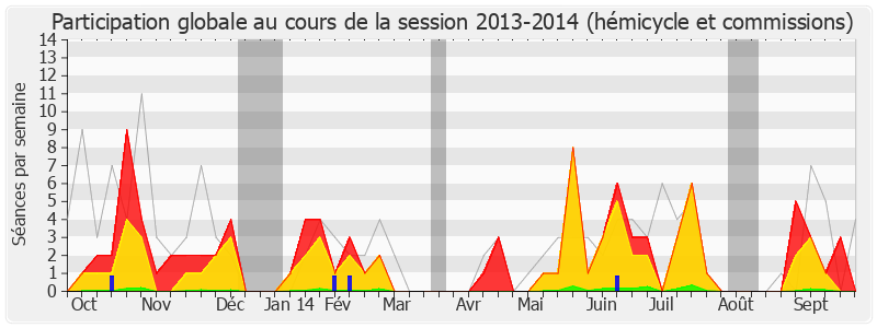 Présences enregistrées     Participations     Mots prononcés (x 10 000)     Vacances parlementaires   Présence médiane