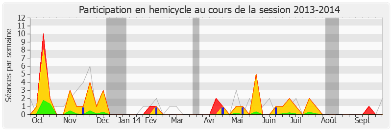 Présences enregistrées     Participations     Mots prononcés (x 10 000)     Vacances parlementaires   Présence médiane
