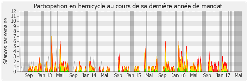 Présences enregistrées     Participations     Mots prononcés (x 10 000)     Vacances parlementaires   Présence médiane