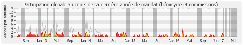 Présences relevées Participations Mots prononcés (x 10 000) Vacances parlementaires — Présence médiane Explications