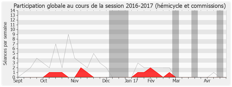 Présences enregistrées     Participations     Mots prononcés (x 10 000)     Vacances parlementaires   Présence médiane