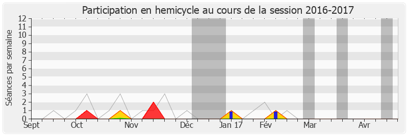 Présences enregistrées     Participations     Mots prononcés (x 10 000)     Vacances parlementaires   Présence médiane