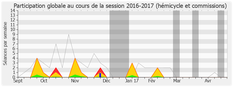 Présences enregistrées     Participations     Mots prononcés (x 10 000)     Vacances parlementaires   Présence médiane