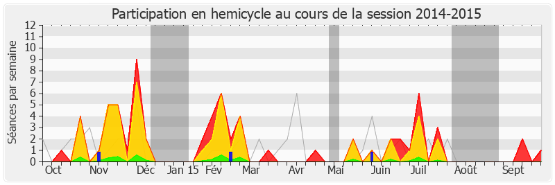 Présences enregistrées     Participations     Mots prononcés (x 10 000)     Vacances parlementaires   Présence médiane