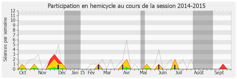 Présences enregistrées     Participations     Mots prononcés (x 10 000)     Vacances parlementaires   Présence médiane