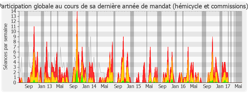 Présences enregistrées     Participations     Mots prononcés (x 10 000)     Vacances parlementaires   Présence médiane