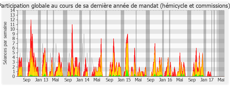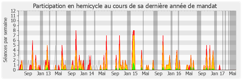 Présences enregistrées     Participations     Mots prononcés (x 10 000)     Vacances parlementaires   Présence médiane