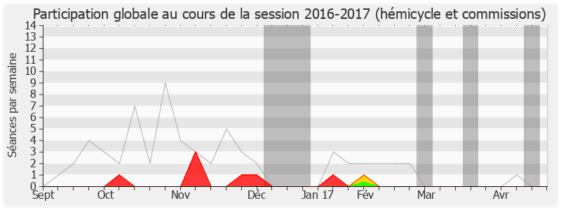 Présences enregistrées     Participations     Mots prononcés (x 10 000)     Vacances parlementaires   Présence médiane