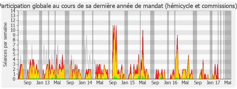 Présences enregistrées     Participations     Mots prononcés (x 10 000)     Vacances parlementaires   Présence médiane