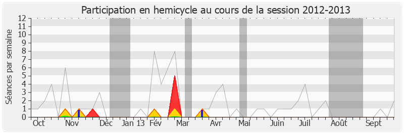 Présences enregistrées     Participations     Mots prononcés (x 10 000)     Vacances parlementaires   Présence médiane