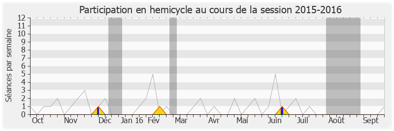 Présences enregistrées     Participations     Mots prononcés (x 10 000)     Vacances parlementaires   Présence médiane