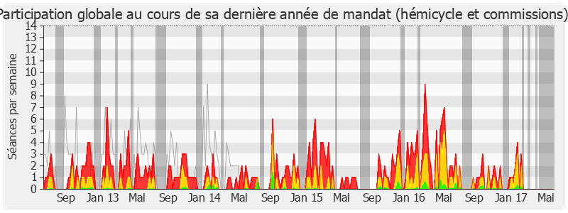 Présences enregistrées     Participations     Mots prononcés (x 10 000)     Vacances parlementaires   Présence médiane