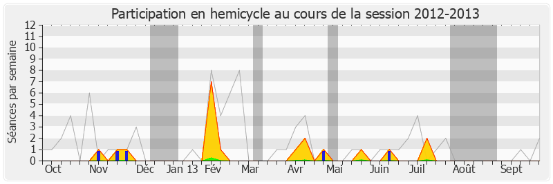 Présences enregistrées     Participations     Mots prononcés (x 10 000)     Vacances parlementaires   Présence médiane