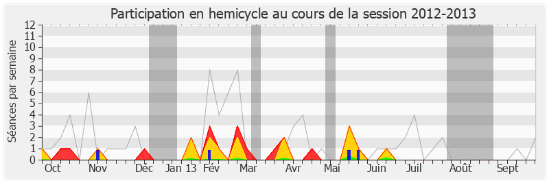 Présences enregistrées     Participations     Mots prononcés (x 10 000)     Vacances parlementaires   Présence médiane